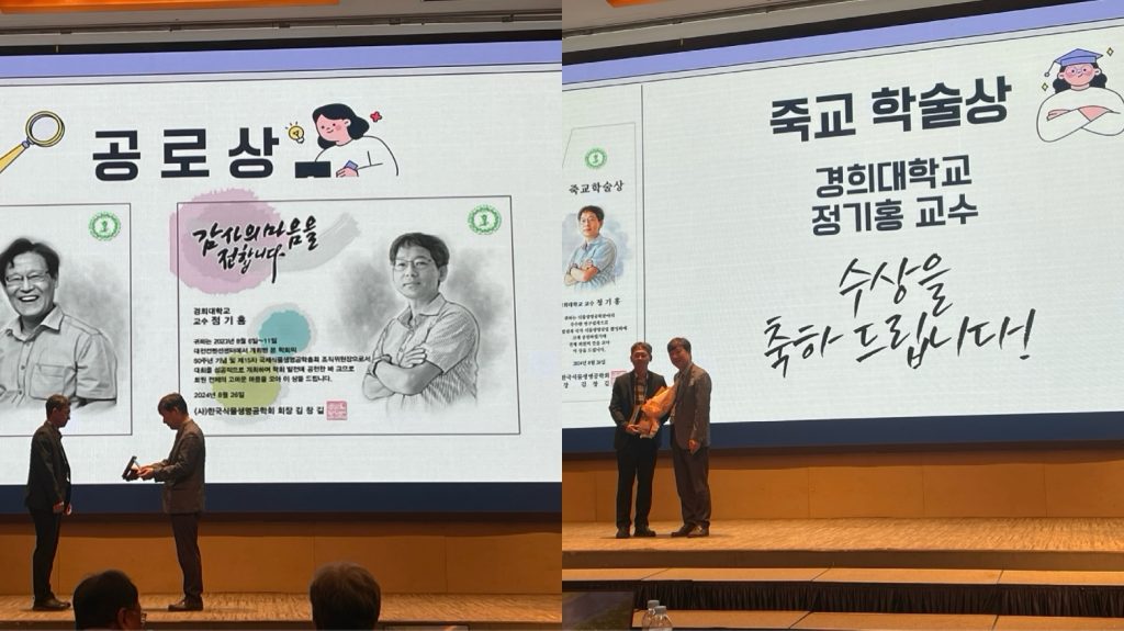 교수님께서 공로상과 죽교 학술상을 수상하셨으며