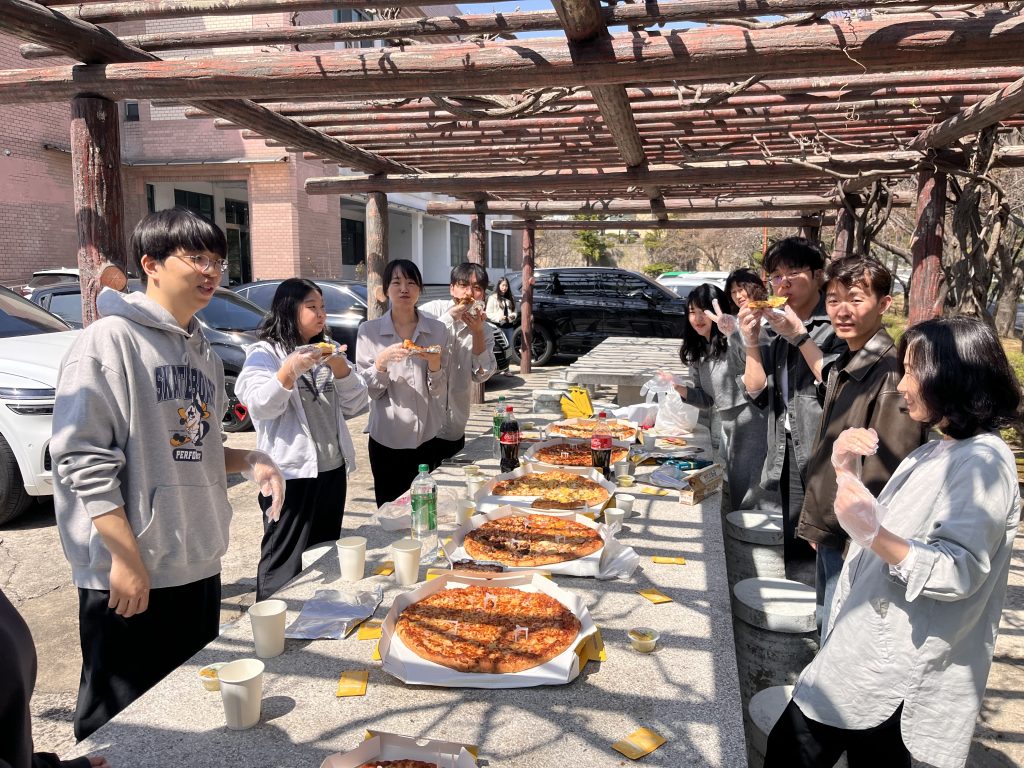 벚꽃 놀이 후 피자를 맛있게 먹었습니당~